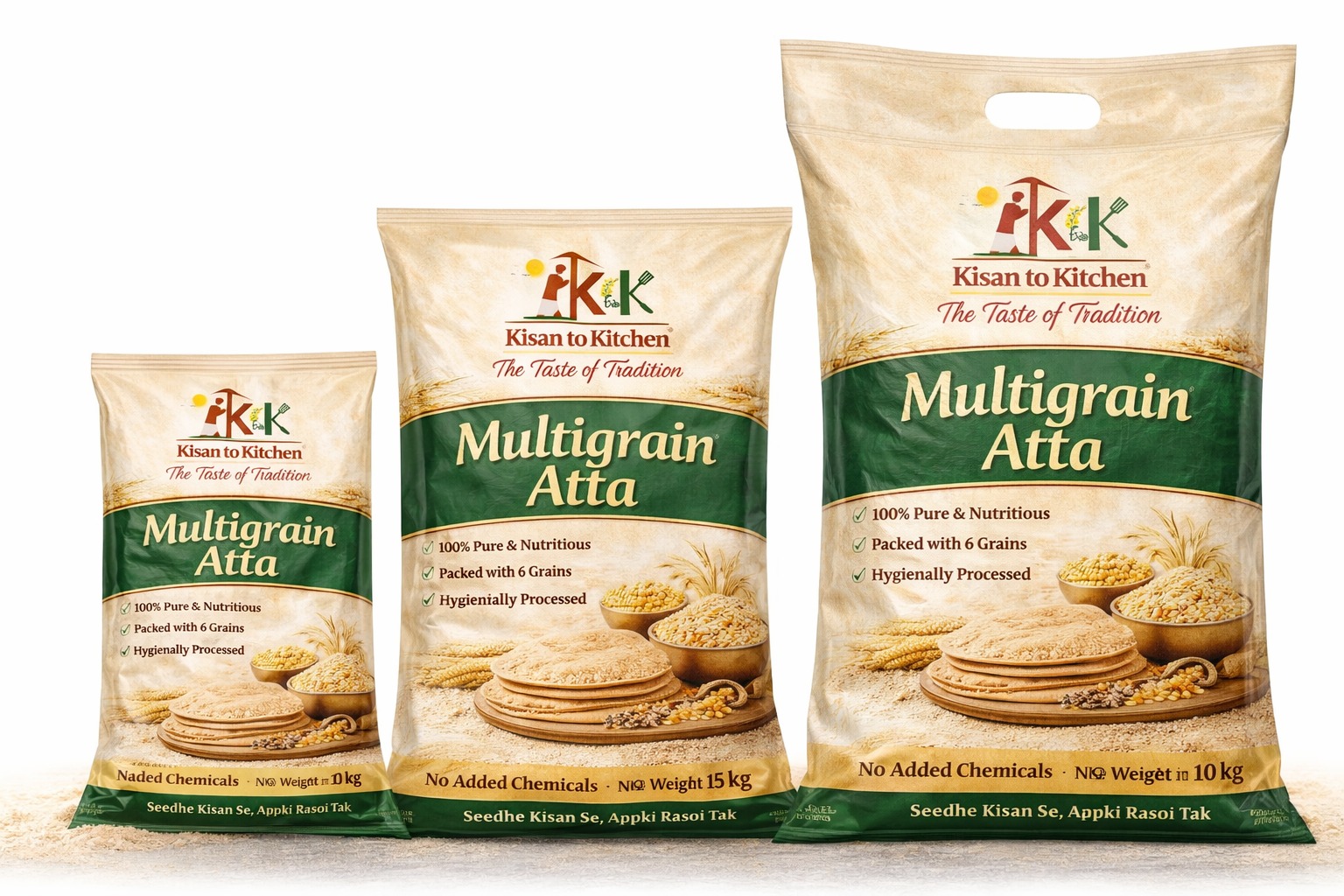 Nourish your family with the wholesome goodness of Kisan to Kitchen Multigrain Atta, made from a carefully balanced blend of nutritious grains. Packed with essential nutrients, this atta supports a healthy lifestyle while delivering a rich taste and soft texture in every bite.