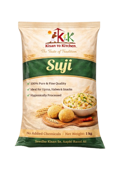 Bring home the goodness of Kisan to Kitchen Suji (Rava), made from premium quality wheat and processed with care to ensure purity, freshness, and superior texture. With its fine granules and natural taste, our suji is perfect for preparing a variety of delicious and wholesome dishes.